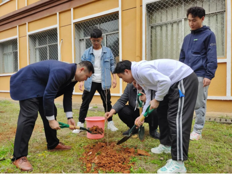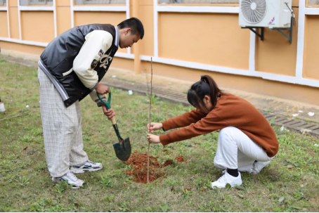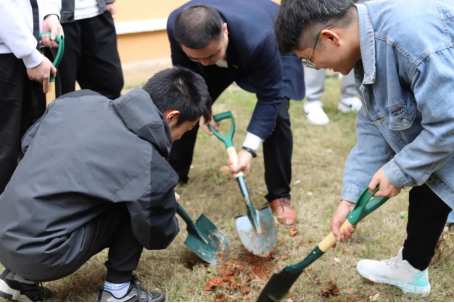仪式结束后,在范书记的带领下同学们拿着树苗、提着水桶、带上锄头、铲子等工具,发挥不怕苦、不怕脏的精神来到植树指定点,大家分工协作,你挖坑我填土,一棵棵小树种下,不仅仅饱含着同学们的热情,更是对绿色环保、植树造林理念的倡导,他们表示,在今后的学习和生活中,将自觉维护校园美好人文环境,传播卫生环保理念。