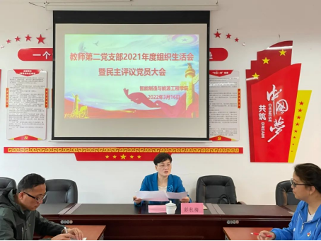 下午四点整,公司教师第二党支部组织生活会暨民主评议党员大会正式开始,本次会议由教师第二党支部书记彭秋梅主持,教师第二党支部全体党员参加了本次会议。