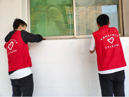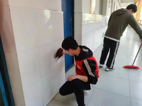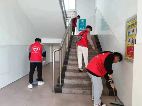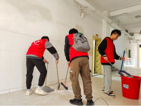 按照分组,志愿者们分别对教学楼各楼层进行打扫。他们有的拿着扫帚将地面清理干净,有的手举抹布将教室桌椅和楼梯扶手擦得锃亮。志愿者工作认真,仔细地清扫教室每个角落,清扫地板、擦拭桌面字迹、椅背污垢,清洁黑板字迹。每个小组都认真地完成自己的工作,切实地践行了“奉献,友爱,互助,进步”的志愿精神,为营造舒适的学习环境奉献出了自己的一份力量。