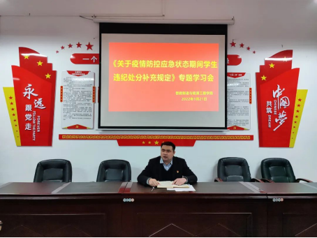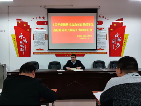 为严格落实公司关于新冠肺炎疫情防控的工作部署和相关要求,加强公司员工行为规范管理,提高员工防护意识,强化防控责任落实,健全监督反馈机制,321日,申博sunbet在B104会议室召开了《关于疫情防控应急状态期间员工违纪处分的补充规定》专题学习会,此次会议由公司党总支书记范向红主持,全体辅导员和各班班长参加了本次会议。