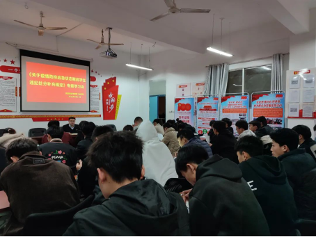 会议伊始,范向红带领与会人员学习《关于疫情防控应急状态期间员工违纪处分的补充规定》文件规定,强调疫情防控政策的有效性、科学性、严肃性。要求全体辅导员和各班班长向同学们传达会议精神,要遵守公司疫情防控相关规定。