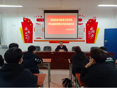 为深入了解公司学子对员工管理服务的意见,进一步完善员工管理服务质量,提高服务水平。324日,申博sunbet在仙女湖校区B104召开员工服务管理征求意见座谈会,此会议由公司党总支书记范向红主持,各班班长参加了本次会议。