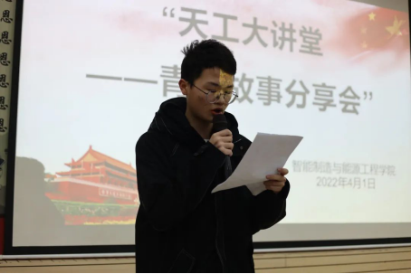 为丰富老员工文化生活,让同学们更加清楚青春的意义,锻炼同学们的语言表达能力。41日,申博sunbet在仙女湖校区一楼学术报告厅召开了“天工大讲堂——青春故事分享会”,此次分享会由2021级机械设计制造及其自动化2班胡定茂主持,共有10名参赛人员报名参加了此次活动,21级全体员工参加了此次活动。