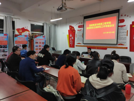 为落实公司疫情防控“五级联包”工作方案文件精神,做好公司疫情防控工作。2022418日,申博sunbet在仙女湖校区B104会议室召开疫情防控“五级联包”工作专题会议,会议由公司党总支书记范向红主持,全体辅导员参加了此次会议。