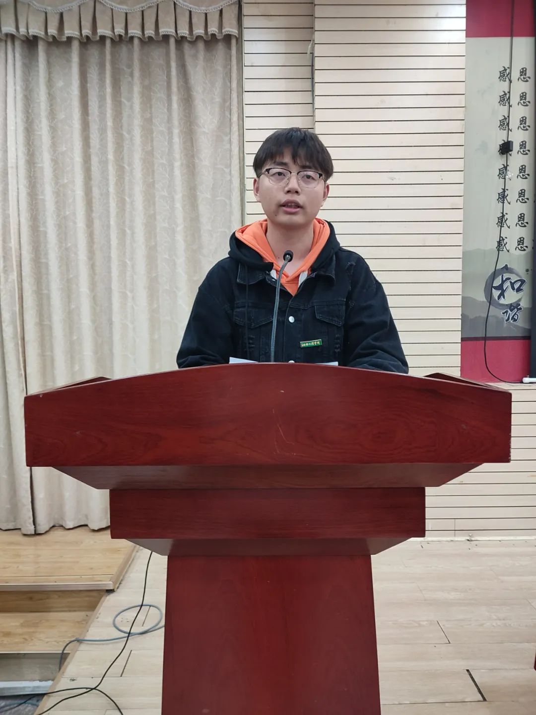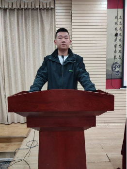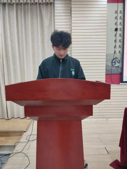 大会第四项:巡查人员代表刘海新上台发言,他表示:巡查人员会坚守阵地,加强巡查,帮助同学们养成良好的生活作息和饮食习惯,同时维护教室环境的干净整洁,营造良好的学习氛围,让同学们在更好的环境里埋头苦读。
