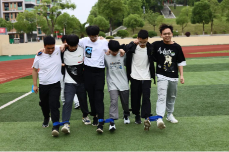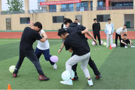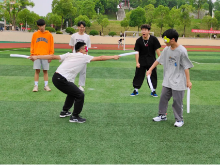此次活动员工成员分成红、橙、蓝、绿四个队开展团队活动,通过默契配合完成踩气球、盲人大乱斗、背夹球以及经典的八人九足四个团队游戏。同学们在活动中分工明确、团队协作。通过一些列的素质拓展活动,员工干事们充分展现自己的青春风采。