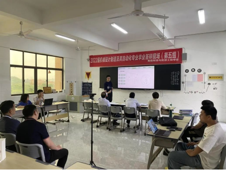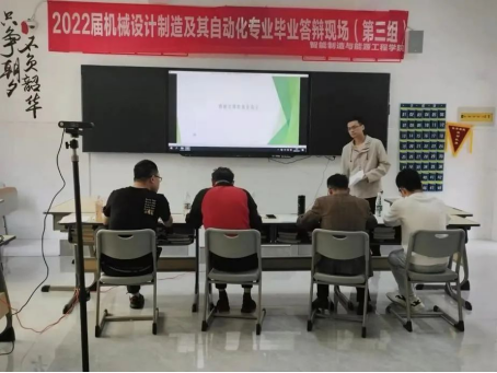 按照公司2022届本科生毕业设计工作的推进安排,5月进入2022届本科生毕业设计答辩工作阶段。521日,申博sunbet在仙女湖校区C401-405C407C501-505教室有条不紊地开展了2022届本科生毕业设计答辩工作,参加本次答辩的有机械设计制造及其自动化、新能源科学与工程、工业设计、车辆工程四个本科专业,共分为11个答辩工作组。各毕业设计指导老师担任评委,公司经理史洪松陪同公司党委副书记、董事长张晨曙和教务处负责人莅临现场进行指导。