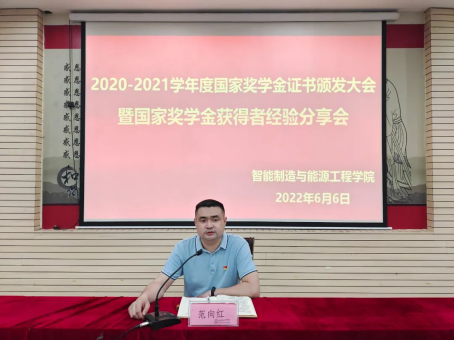 为了全面贯彻党的教育方针,紧紧围绕立德树人根本任务,进一步提高国家奖学金政策的知晓度,加强资助育人功能,66日,申博sunbet在仙女湖校区报告厅一楼举办2020-2021学年度国家奖学金证书颁发大会暨国家奖学金获得者分享会,会议由2020级机械设计制造及其自动化本科1班王东主持,公司党总支书记范向红以及21级全体员工参加此次会议。