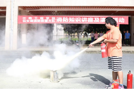 为了使这次演练顺利进行,在演练前,公司对演练进行了精心组织和周密的安排。仙女湖消防救援大队消防员在实训楼前广场,面对师生,运用通俗易懂语言就火灾的危害、校园防火注意事项、如何正确拨打119”报警电话、如何在火场中逃生和自救、疏散逃生过程中注意事项等消防常识进行详细的讲解。同时,将灭火器的使用方法总结为“提瓶、拔销、对根、压柄”四个要领,对参加培训演练的师生,进行了操作、示范、讲解、提问互动,增强师生自防自救意识。