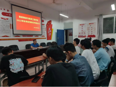 为进一步贯彻落实校园疫情防控工作要求,做好秋季学期开公司园疫情防控工作。202294日,申博sunbet在仙女湖校区B104室召开2022年秋季疫情防控专题会议。会议由公司党总支书记范向红主持,全体辅导员以及各班班干参加了此次会议。