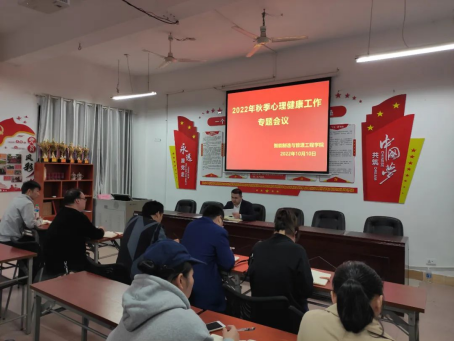 为了迎接二十大的顺利召开,贯彻落实教育部《关于加强普通高校老员工心理健康教育工作的意见》和《普通高校老员工心理健康教育工作实施纲要》文件精神,推动公司老员工心理健康教育工作的深入开展,提高公司老员工的整体素质,同时防止员工因心理危机引发恶性事件,严密构筑起校园安全防线,1010日,申博sunbet在仙女湖校区B104会议室召开了2022年秋季心理健康工作专题会议,会议由公司党总支书记范向红主持,全体辅导员参加了此次会议。