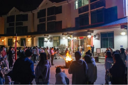 下午三点,同学们来到了红军当年练兵的步云山练兵场,接受军事训练的洗礼。步云山练兵场是井冈山斗争时期著名的红军练兵场,我们在此开展了激情节拍、罗马炮架、抢滩登陆等团建活动。以饱满的热情圆满地完成了训练任务。在练兵场的实景教学下同学们体会到了井冈山革命斗争时期红军战士的艰苦卓绝,深刻学习并领悟红军战士们吃苦耐劳、艰苦奋斗的作风。