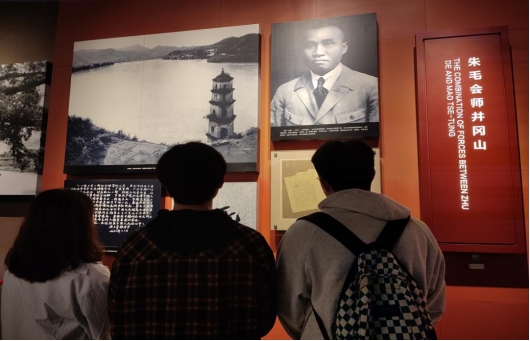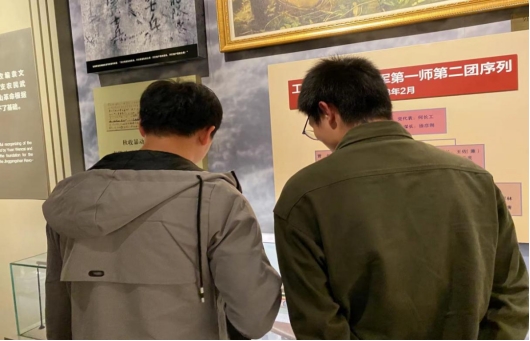 下午三点,大家来到井冈山革命博物馆,博物馆内记录了革命家们在毛泽东的带领下开辟了我国第一个农村革命根据地,同时与蒋介石国民党反动派进行不屈斗争的故事。在博物馆里,同学们驻足观看,认真聆听着那段已永远被铭记的历史,通过一张张照片,一件件遗物,一个个故事,让了解到了中国共产党人在井冈山革命时期的艰苦岁月。