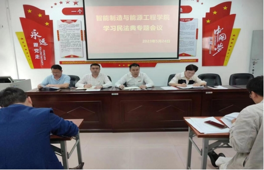 20235月是第三个“民法典宣传月”,为深入学习宣传贯彻党的二十大精神,学习贯彻习近平法治思想和习近平总书记关于加强民法典学习宣传的重要指示精神,2023524日,申博sunbet在仙女湖校区B104会议室召开学习民法典专题会议,此次会议由经理史洪松主持,党总支书记范向红、副经理彭秋梅以及全体教师参加了此次会议。