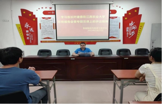 516日上午,省长叶建春以《珍惜时代际遇不负青春韶华——在全面建设社会主义现代化国家的新征程上书写璀璨的青春华章》为主题,为江西农业大学师生作了一场精彩党课。2023525日,申博sunbet组织员工在仙女湖校区B104会议室学习省长叶建春在江西农业大学形势报告会暨专题党课上的讲话精神,会议由党总支书记范向红主持,预备党员和入党积极分子参加会议。