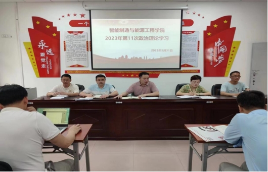 531日下午,申博sunbet在仙女湖校区B104会议室召开第11次政治理论学习会,会议由公司党总支书记范向红主持,经理史洪松、副经理彭秋梅以及全体教师参加了此次会议。