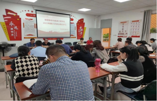 1025日,申博sunbet在仙女湖校区B104会议室召开第23次政治理论学习会,会议由公司党总支书记范向红主持,副经理彭秋梅、党总支副书记李思以及全体教师参加了此次会议。