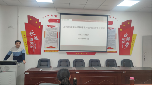 为进一步提升教师教学水平,以立德树人为根本,鼓励教师深研教学内容、分享教学理念及教学经验,在全校范围内创建开放性、研究性的交流平台,营建研究教学、投身教学的良好氛围,公司积极开展2023/2024学年第一学期教学沙龙活动。本学期第一场教学沙龙活动于2023111B104多媒体会议室举行,讲座主题:“虚拟仿真实验课程建设与应用的思考与实践”,主讲人为蔡振兴副教授,主持人为游细辉。公司所有专业教师参加了此次教学沙龙活动。