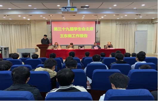 由第39届团总支员工会主席王东做2022-2023年度员工会工作总结报告。他的话语坚定有力,为新一届员工会成员分享工作经验。