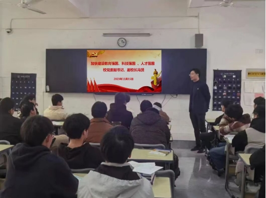 为深入学习贯彻党的二十大精神,深入贯彻教育部《关于加强新时代高校“形势与政策”课建设的若干意见》等文件精神,充分发挥领导干部在宣讲党的理论、路线、方针、政策上的示范带头作用,突出思政课启润心智、铸魂育人的功能。20231115日,公司党委副书记、副董事长冯赟在仙女湖校区C5022023级机械设计制造及其自动化本科2班的员工讲授以《加快建设教育强国、科技强国、人才强国》为题的“形势与政策”课程。