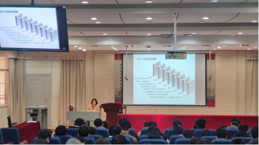 张水香副教授主要讲述了工业4.0概念、工业4.0的四个智能、工业4.0的要素、工业4.0的智能制造业四个方面的内容。张水香副教授结合了自己多年的教学与实践经验,鼓舞现场的同学们,要坚信自己所学的专业对于科技强国的重要意义,要扎实学好各门功课,要勇于挑战各项学习困难,为祖国建设成为世界工业强国而奋斗。