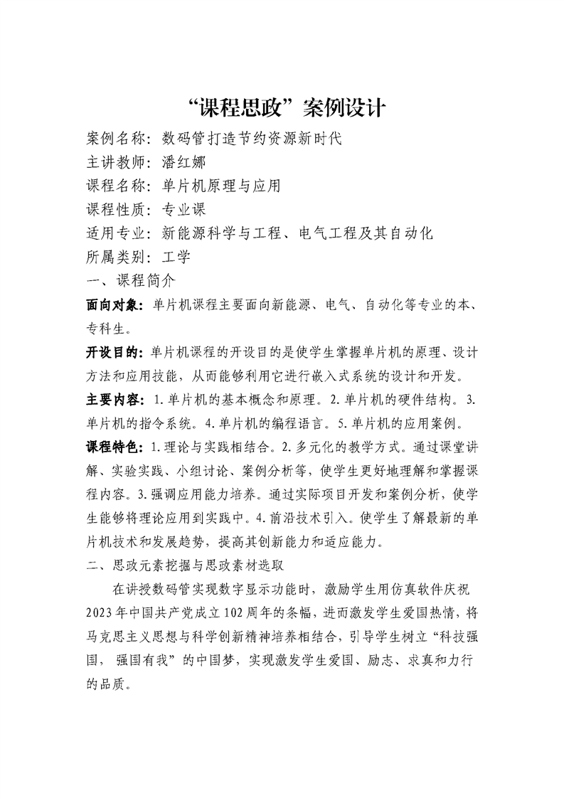 【课程思政案例设计】潘红娜:数码管打造节约资源新时代