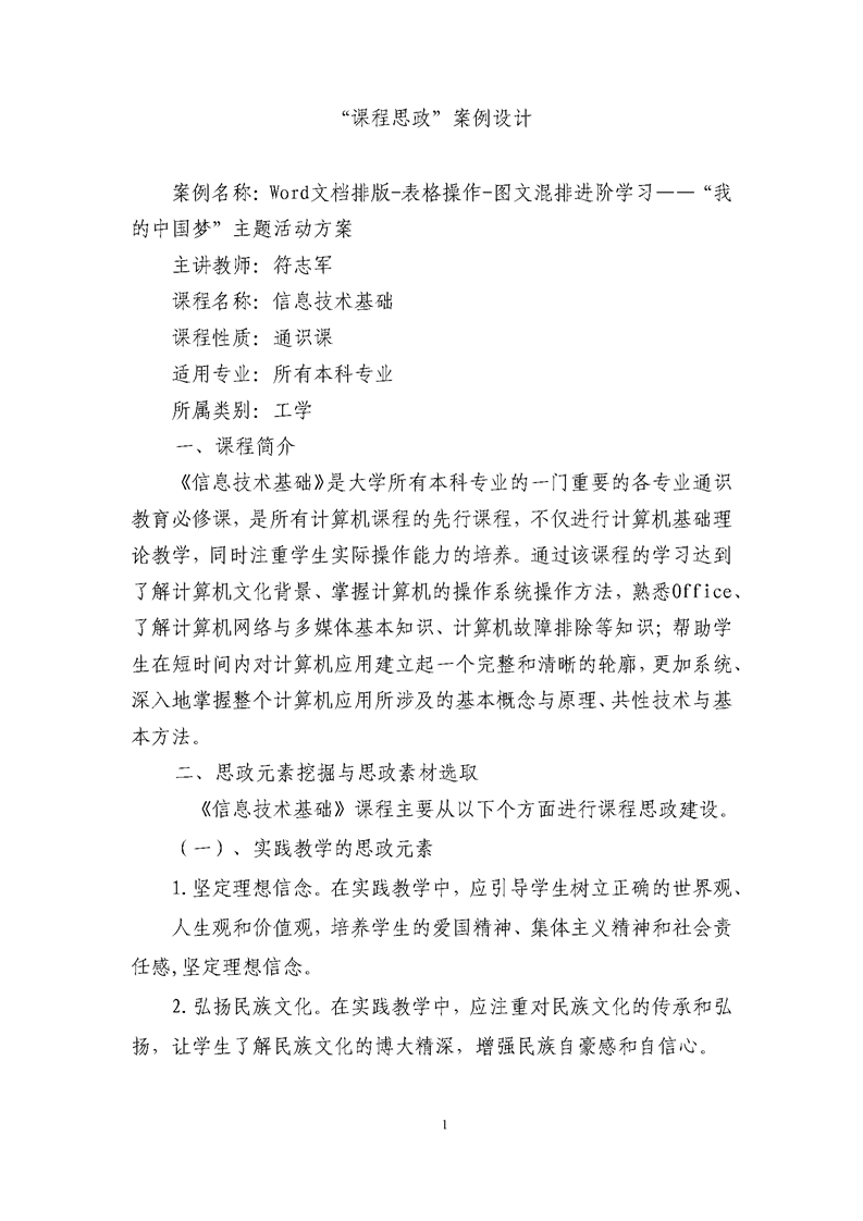 【课程思政优秀案例】符志军:Word文档排版-表格操作-图文混排进阶学习——“我的中国梦”主题活动方案