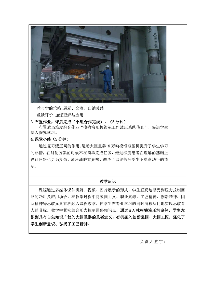 【“课程思政”示范课程】李小梅《液压与气压传动》教学设计样例