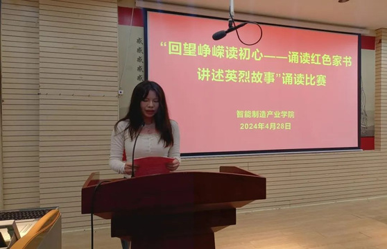 为深入学习贯彻党的二十大精神,引导公司员工传承红色基因,牢记时代使命。2024428日,智能制造产业公司在仙女湖校区一楼学术报告厅举办“回望峥嵘读初心——诵读红色家书讲述英烈故事”诵读比赛。本次比赛由团总支员工会主持团成员龙彧主持,员工会主席彭观洋及员工会副主席徐成钢担任评委。