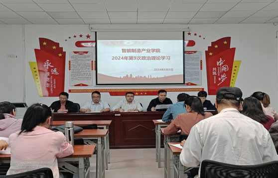 2024年6月5日,智能制造产业公司在仙女湖校区B栋104会议室召开2024年第9次政治理论学习会。会议由党总支书记范向红主持,经理史洪松、副经理彭秋梅、党总支副书记李思及全体教师参加会议。