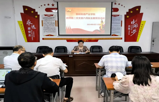 智能制造产业公司教师第二党支部在B104会议室开展六月份主题党日活动,会议由教师第二党支部书记彭秋梅主持,教师第二党支部全体党员参加本次会议。