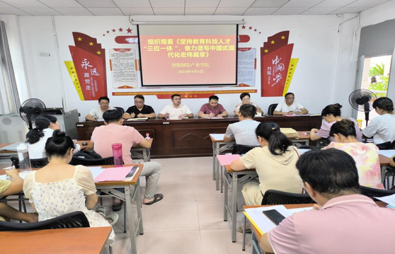 为进一步加强公司教师队伍的素质建设,增强公司全体教师的责任感和使命感。202494日,智能制造产业公司组织全体教师在仙女湖校区B104会议室共同观看《坚持教育科技人才“三位一体”,奋力谱写中国式现代化宏伟篇章》示范微党课。