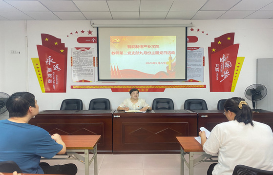 智能制造产业公司教师第二党支部在B104会议室开展九月份主题党日活动,会议由教师第二党支部书记彭秋梅主持,教师第二党支部全体党员参加本次会议。会上,彭秋梅指出,要强化党对基层治理的引领力,建强基层党组织战斗堡垒,充分发挥党的领导和党组织的作用,加强党的基层组织建设,加强基层干部队伍建设,发挥党员先锋模范作用,持续推动基层党组织建设走深走实。