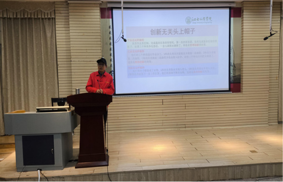 讲座伊始,周昌勇以其丰富的实践经验与深厚的理论功底,围绕“创新无关头上帽子——讲述三个和尚的故事”、“创新企业浴火重生——讲述新余钢铁的故事”、“创新护航企业发展——讲述瀚德科技的故事”、“创新创业主动作为——讲述当代员工的目标”四个话题进行了深入浅出、生动有趣的讲解。
