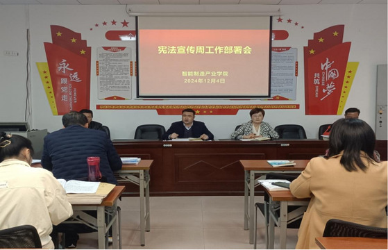 为深入学习贯彻习近平法治思想,弘扬宪法精神,维护宪法权威,推动宪法全面实施。2024124日,智能制造产业公司在仙女湖校区B104会议室召开宪法宣传周工作部署会。此次会议由党总支书记范向红主持,副经理彭秋梅以及全体教师参加会议。