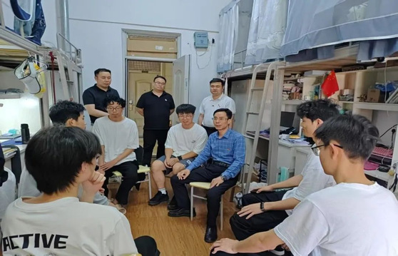刘德华来到智能制造产业公司仙湖4A502员工宿舍,与同学们深入交流。他细心观察了同学们的居住环境,并询问了他们在生活、学习等各方面情况。他希望各宿舍的同学能够友好相处,在生活中互帮互助,寝室长能起到带头作用,带领舍友保持干净整洁的寝室卫生,共同营造舒适温馨的居住环境。