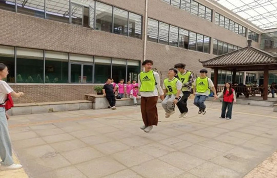 讲解结束后,2023级新能源科学与工程本科1班的同学们开展了一场充满趣味的户外素质拓展活动。在集体跳绳活动中,队员们随号令依次跃入,默契配合,动作整齐划一,绳影翻飞间尽显团队协作的力量与灵动。整场拓展活动张弛结合,尽情展现了造学子的蓬勃青春风采。