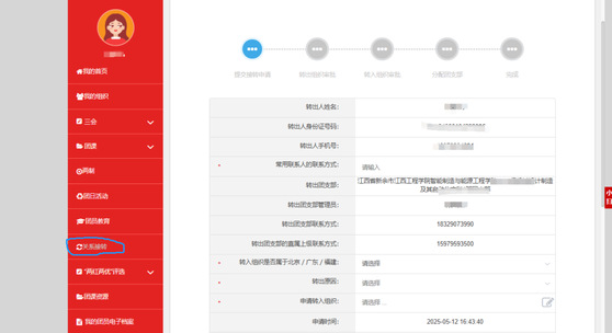 4.登入后寻找左侧菜单中的“关系转接”并点击(如图4所示)