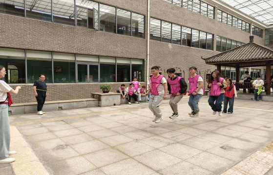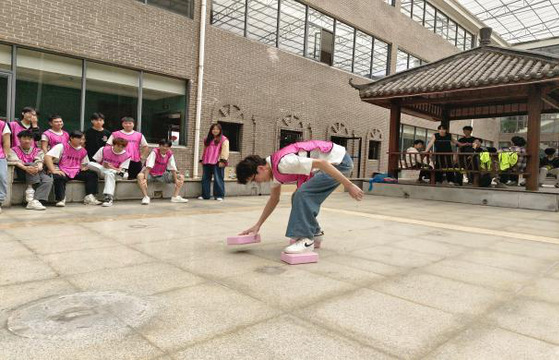 合影留念后,2023级工业机器人技术专科1班的班委迅速组织同学们开展户外素质拓展。首先进行跳绳环节,同学们自由分组,有的单人快速跳绳,动作敏捷,绳子飞速转动,令人眼花缭乱。接着是摸石头过河项目,同学们分成小组,站在起点线后,依次用三块“石头”交替前进。大家小心翼翼地控制平衡,努力做到又快又稳。尽管有的小组出现失误,石头掉落,但他们迅速调整,继续前进。整个过程中,同学们团结协作,互相鼓励,现场洋溢着团结友爱的氛围。