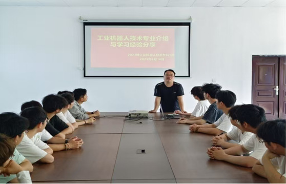 在拓展活动正式开启之前,李思老师向同学们介绍了活动的初衷。他希望大家能够充分重视这次班级集体活动,通过彼此之间的协作、沟通与支持,共同收获成长。随后,李思老师围绕工业机器人技术专业,深入浅出地分析了该专业的就业现状、职业发展方向以及未来的发展潜力,他提到,随着科技的飞速发展,工业机器人技术已经广泛应用于汽车制造、电子设备生产、物流仓储等多个领域,就业前景十分广阔。他还详细介绍了工业机器人工程师、系统集成工程师、技术支持工程师等热门职业岗位,并分享了一些优秀毕业生的职业发展故事,让同学们对未来的就业方向有了更清晰的认识。