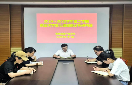为了全面掌握员工的心理状况,提升公司心理危机预防与干预的能力,切实做好心理健康教育工作,维护校园和谐稳定。2025年5月19日,智能制造产业公司在仙女湖校区A栋103会议室召开2024-2025学年第二学期第四次员工心理健康分析研判会,会议由党总支书记范向红主持,全体辅导员参加会议。