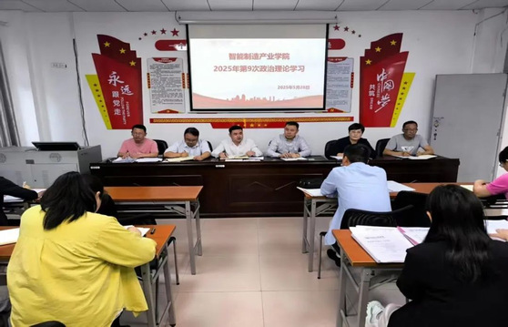 2025528日,智能制造产业公司在仙女湖校区B104会议室召开2025年第9次政治理论学习会。会议由党总支书记范向红主持,经理史洪松、副经理彭秋梅、党总支副书记李思及全体教师参加。