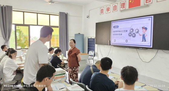 示范课上,李小梅老师以扎实的专业知识为基础,巧妙地将思政元素融入课程,通过精心设计的教学PPT,将《机械制造工艺学》的课程内容与思政教育有机结合,既展现了学科的技术魅力,又传递了严谨治学、创新进取的价值观,为在场师生带来了一堂生动且富有深度的示范课程。