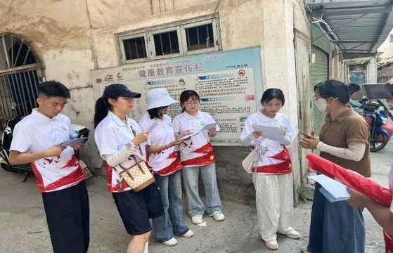 在清晨的第一缕阳光洒在金赣西路社区的街道上时,实践队员们早已整装待发,精神抖擞地与指导老师李思一同出发,前往社区服务中心与工作人员进行活动对接。社区工作人员热情地迎接了他们,分发了免费两癌筛查填写表,并耐心地向实践队员们讲解两癌筛查项目的重要意义以及具体内容,从筛查对象、检查流程到预防措施,每一个细节都讲解得清晰明了。