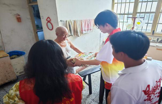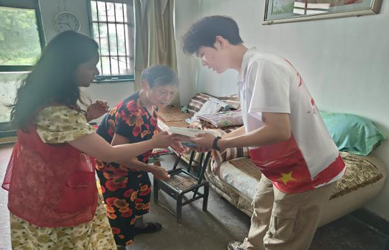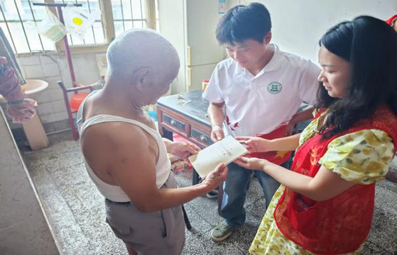 下午,实践队队员在社区工作人员的详细介绍下,选取了多家社区老人家庭进行走访。实践队队员带上面包、牛奶等物资,一同前往老人家中,与老人亲切地拉起家常,并且仔细询问他们的日常生活和身体状况。他们还为老人们讲解了一些常见疾病的医学知识,详细介绍了防暑降温的有效方法和需要注意的事项。整个交流现场充满了温馨与欢乐,洋溢着融洽的氛围。